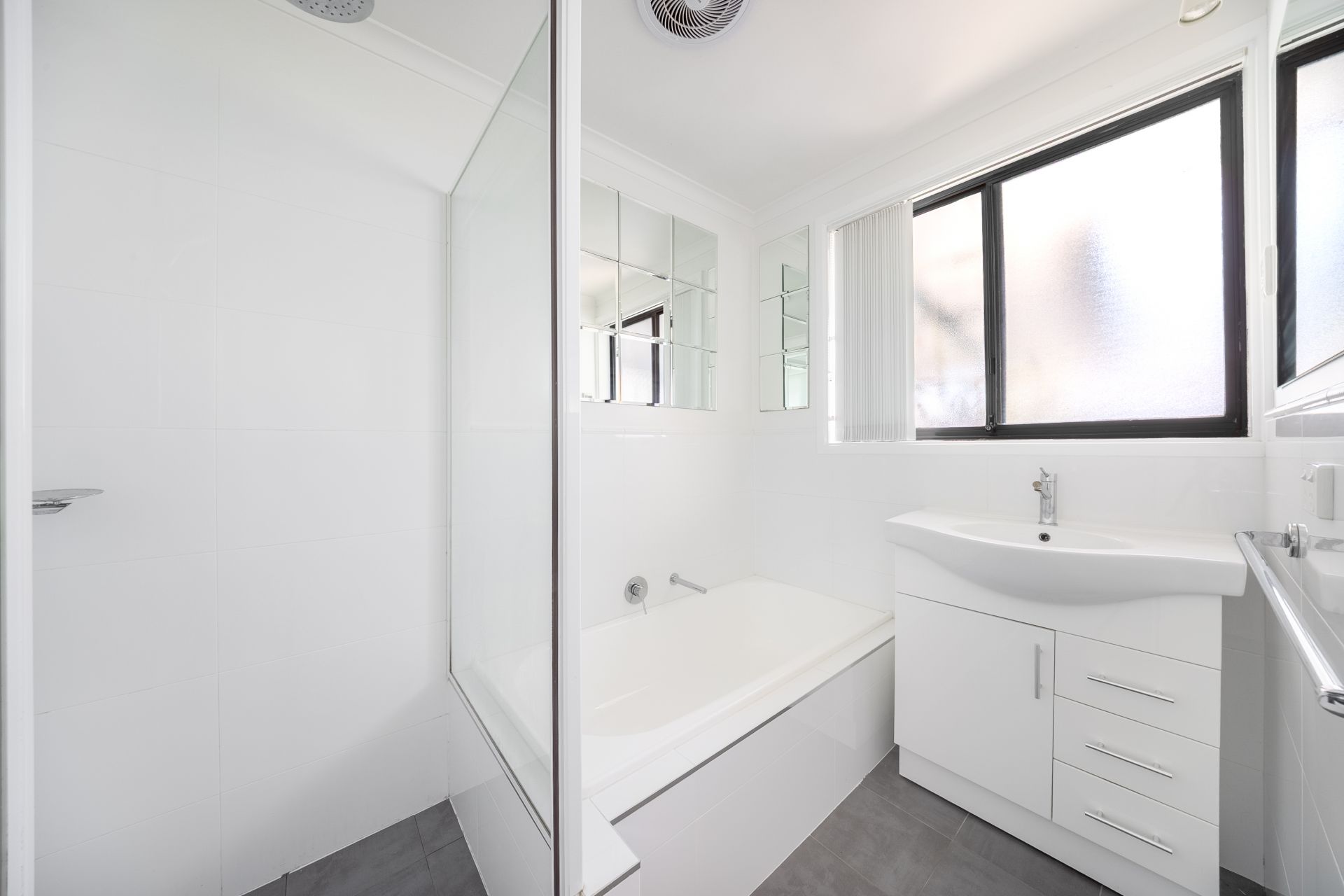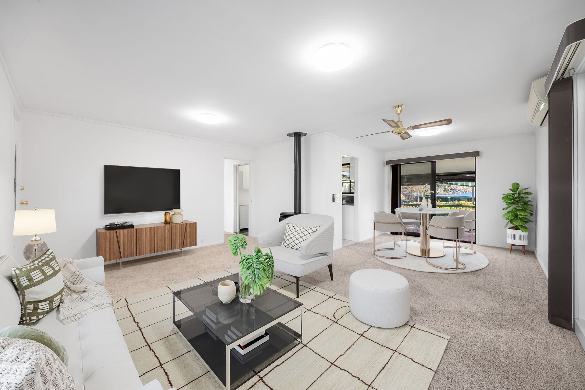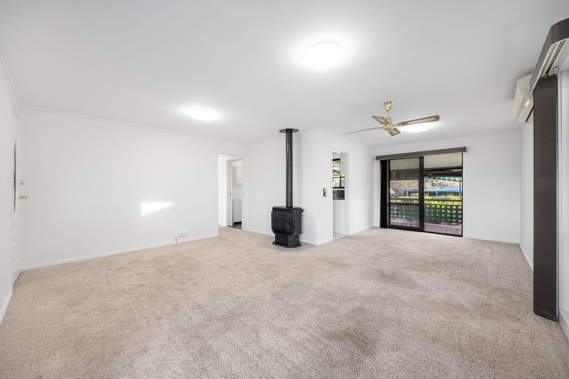 - Reverse cycle split system unit & fan in living area